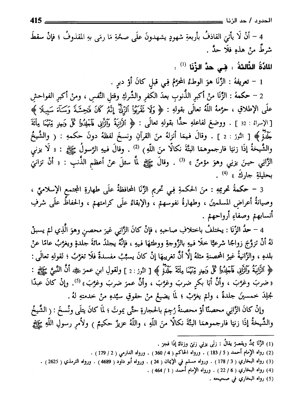 المادةُ الثَّالثةُ: فِي حدِّ الزنَا (¬1) :