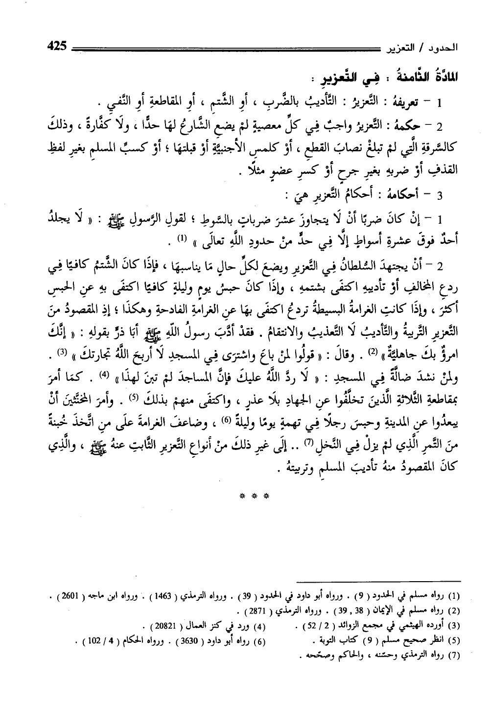 المادَّة الثامنة: فِي التعزير: