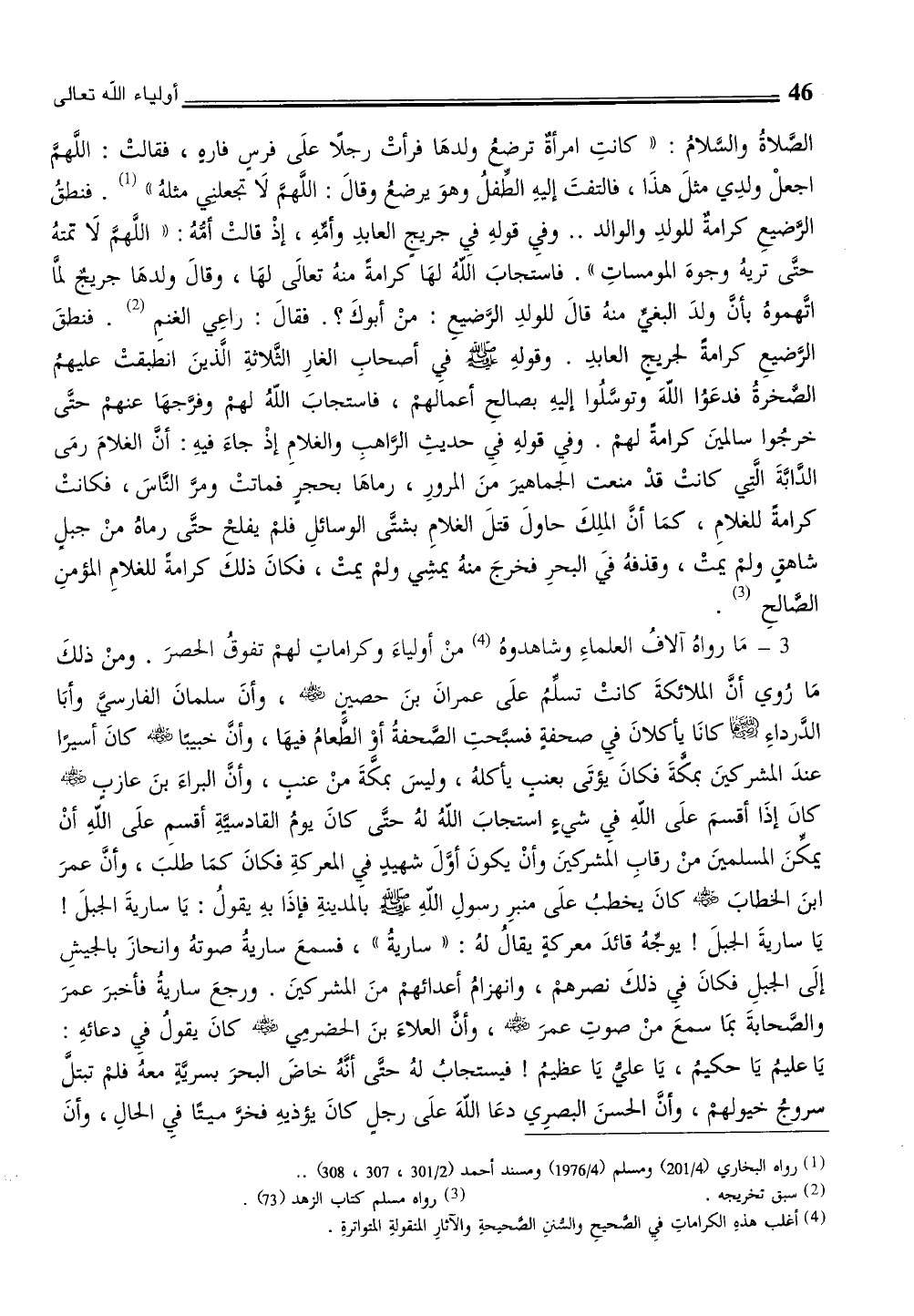 (¬4) أغلب هذهِ الكراماتِ فيِ الصحيحِ والسنن الصحيحةِ والآثارِ المنقولةِ المتواترةِ.