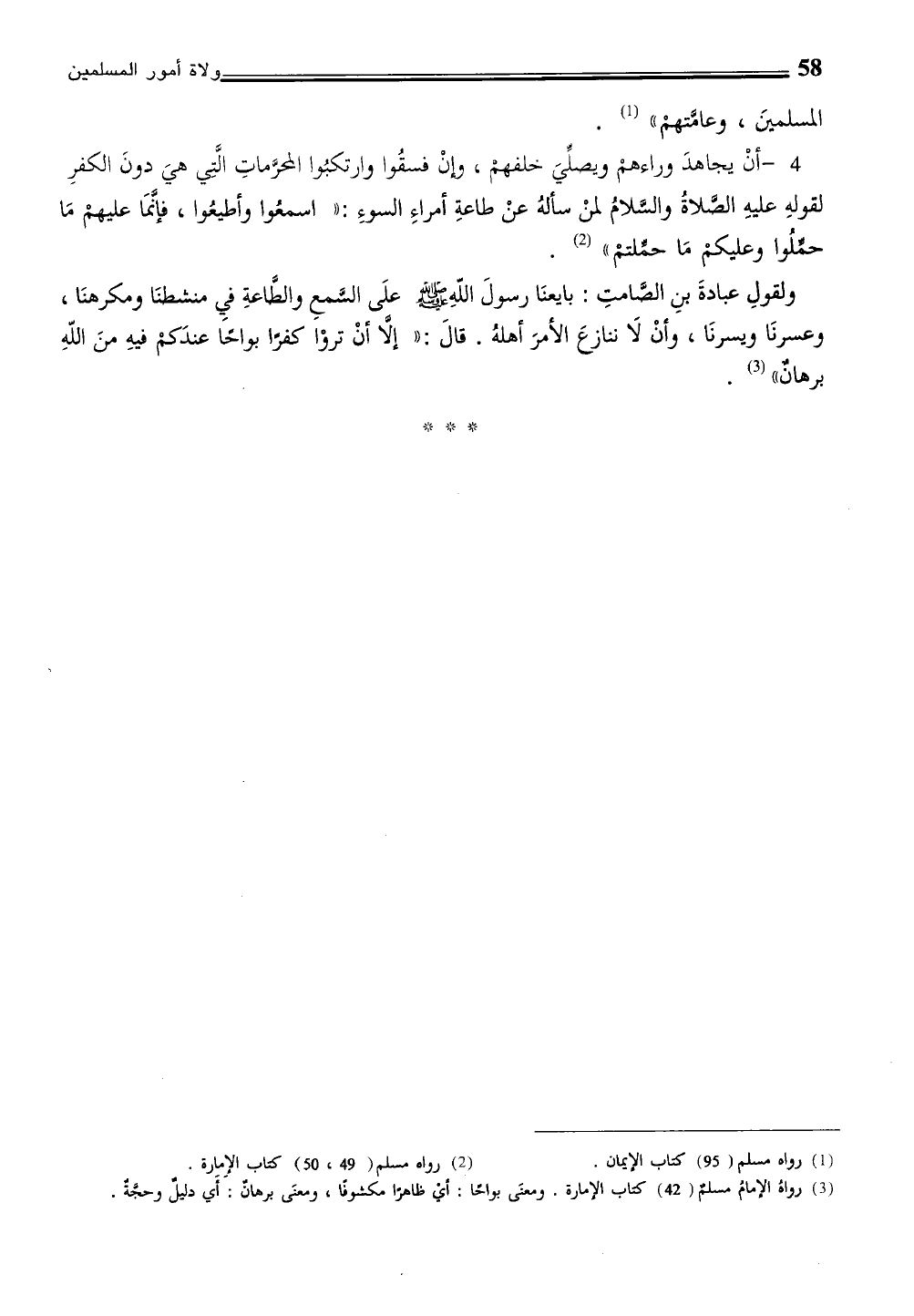 (¬3) رواهُ الإمامُ مسلم (42) كتاب الاٍمارة. ومعنَى بواحًا: أيْ ظاهراً مكشوفاً، ومعنَى برهان: أَي دليل وحجة.
