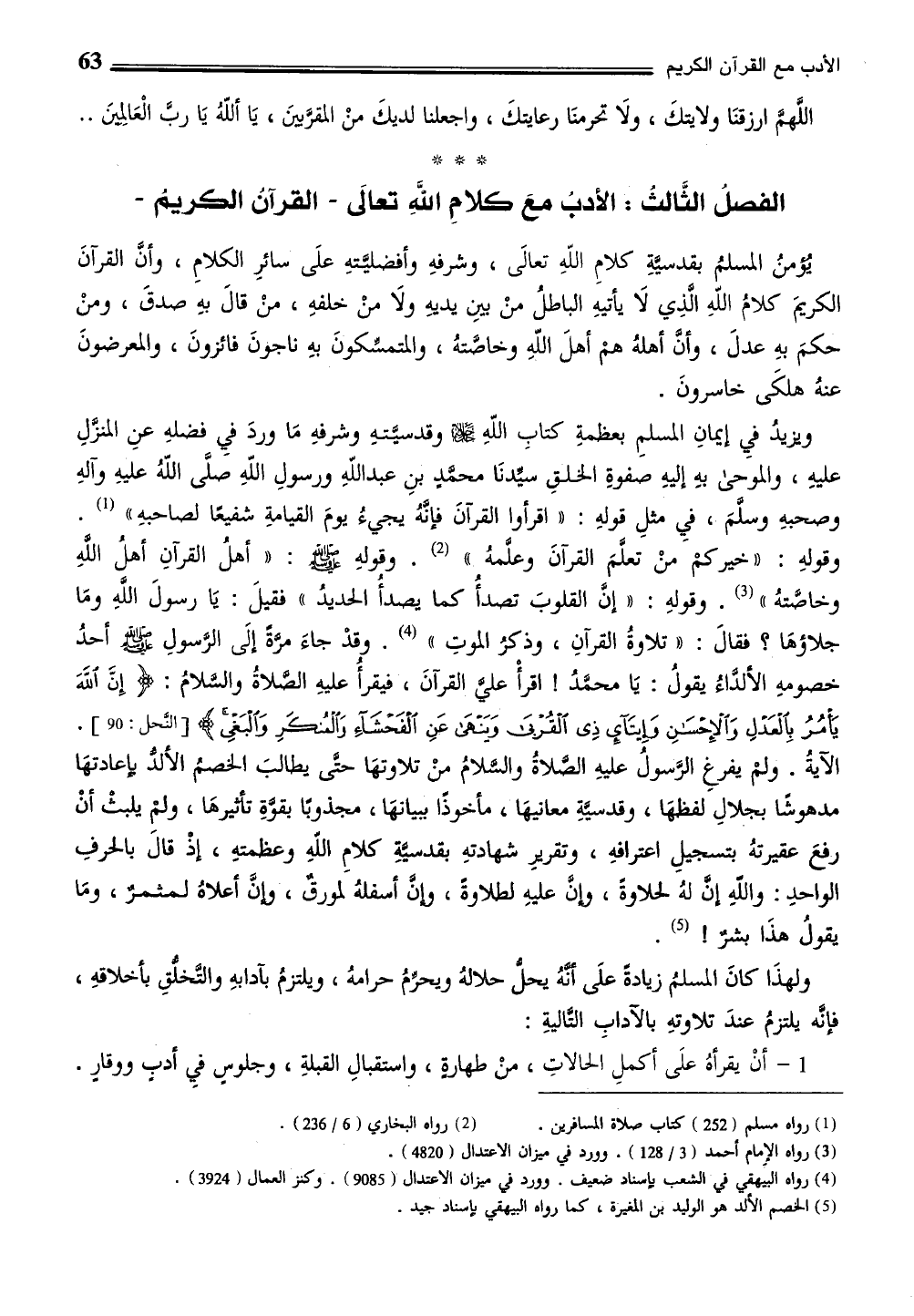 الفصلُ الثَّالث: الأدبُ معَ كلامِ الله تعالَى -القرآنُ الكريمُ-
