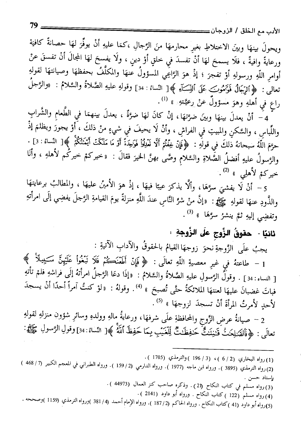 يجبُ علَى الزَّوجةِ نحوَ زوجهَا القيامُ بالحقوق والآدابِ الآتيةِ: