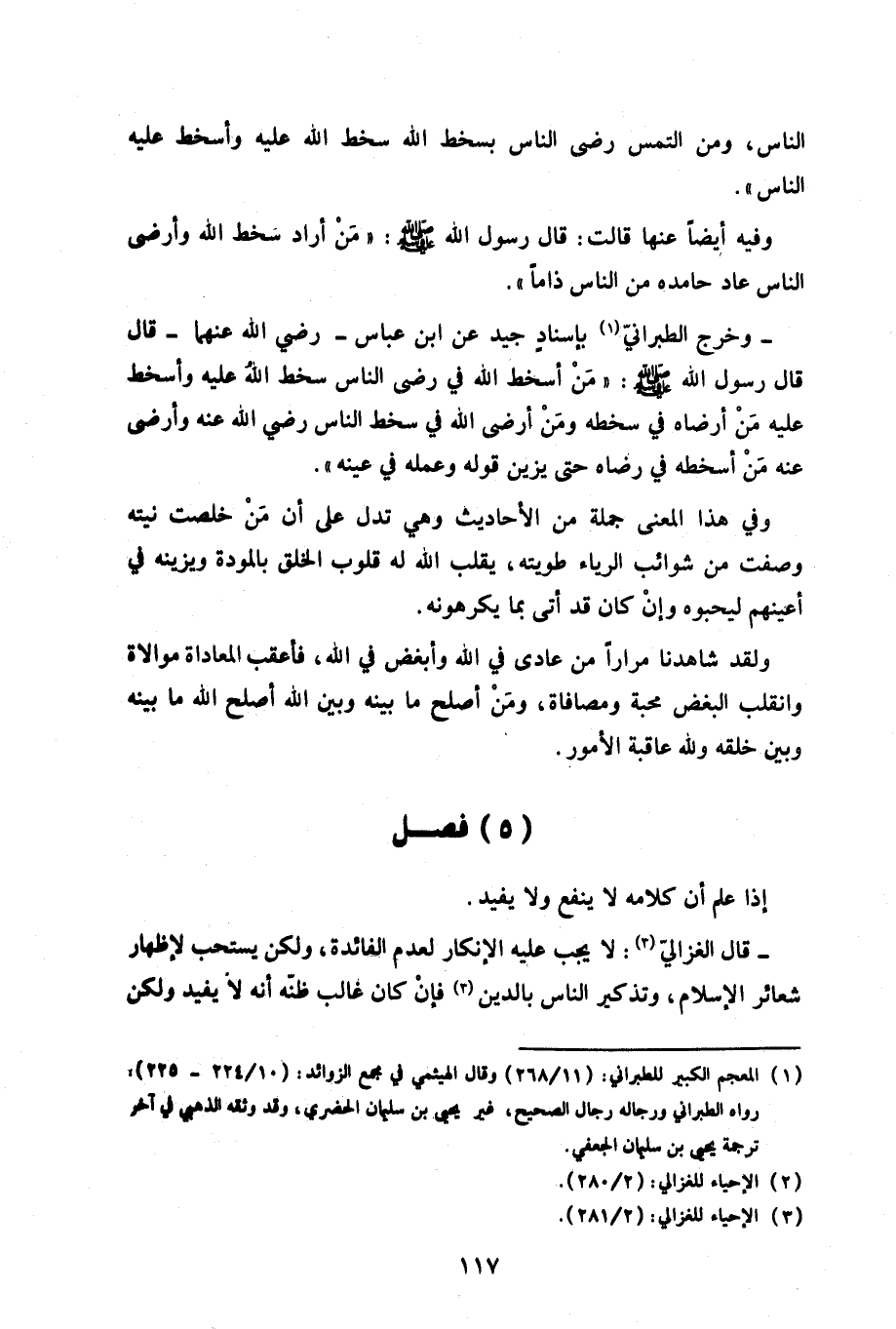 - وخرج الطبراني بإسناد جيد عن ابن عباس -رضي الله عنهما- قال قال رسول الله صلى الله عليه وسلم: «من أسخط الله في رضى الناس سخط الله عليه وأسخط عليه من أرضاه في سخطه ومن أرضى الله في سخط الناس رضي الله عنه وأرضى عنه من أسخطه في رضاه حتى يزين قوله وعمله في عينه».