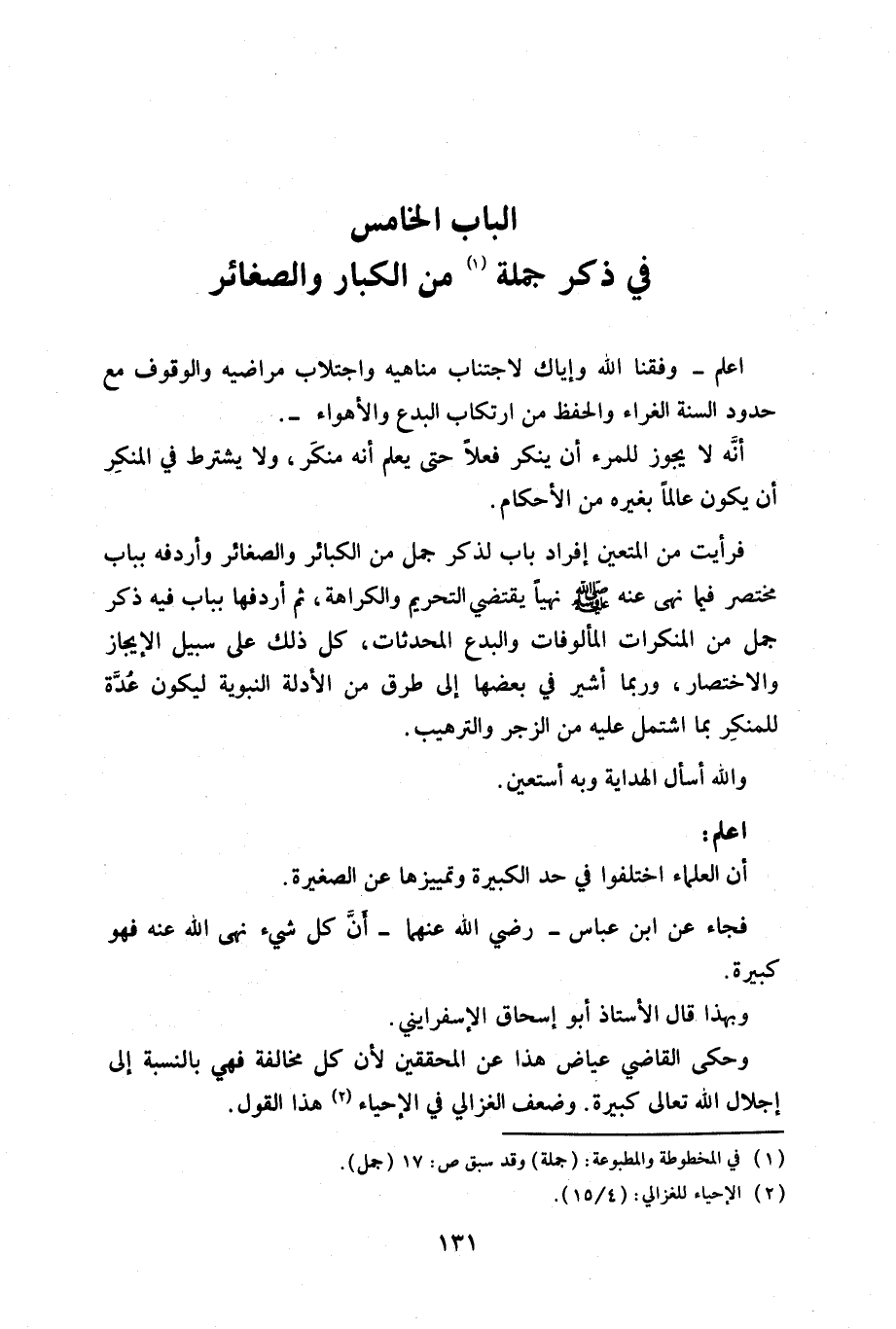 في ذكر جملة من الكبار والصغائر