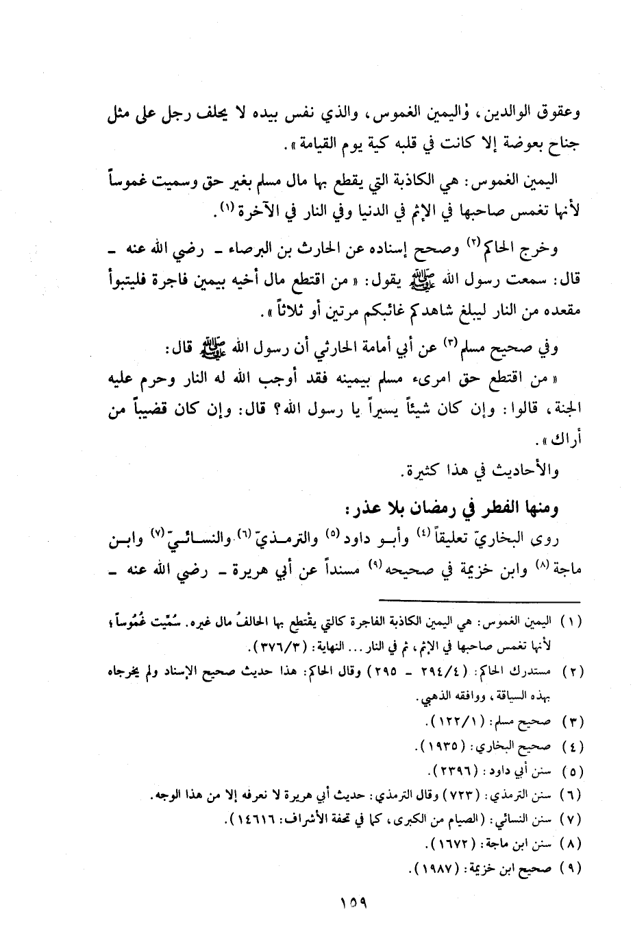 وخرج الحاكم وصحح إسناده عن الحارث بن البرصاء-رضي الله عنه-قال: سمعت رسول الله صلى الله عليه وسلم يقول: «من اقتطع مال أخيه بيمين فاجرة فليتبوأ مقعده من النار ليبلغ شاهدكم غائبكم مرتين أو ثلاثًا».
