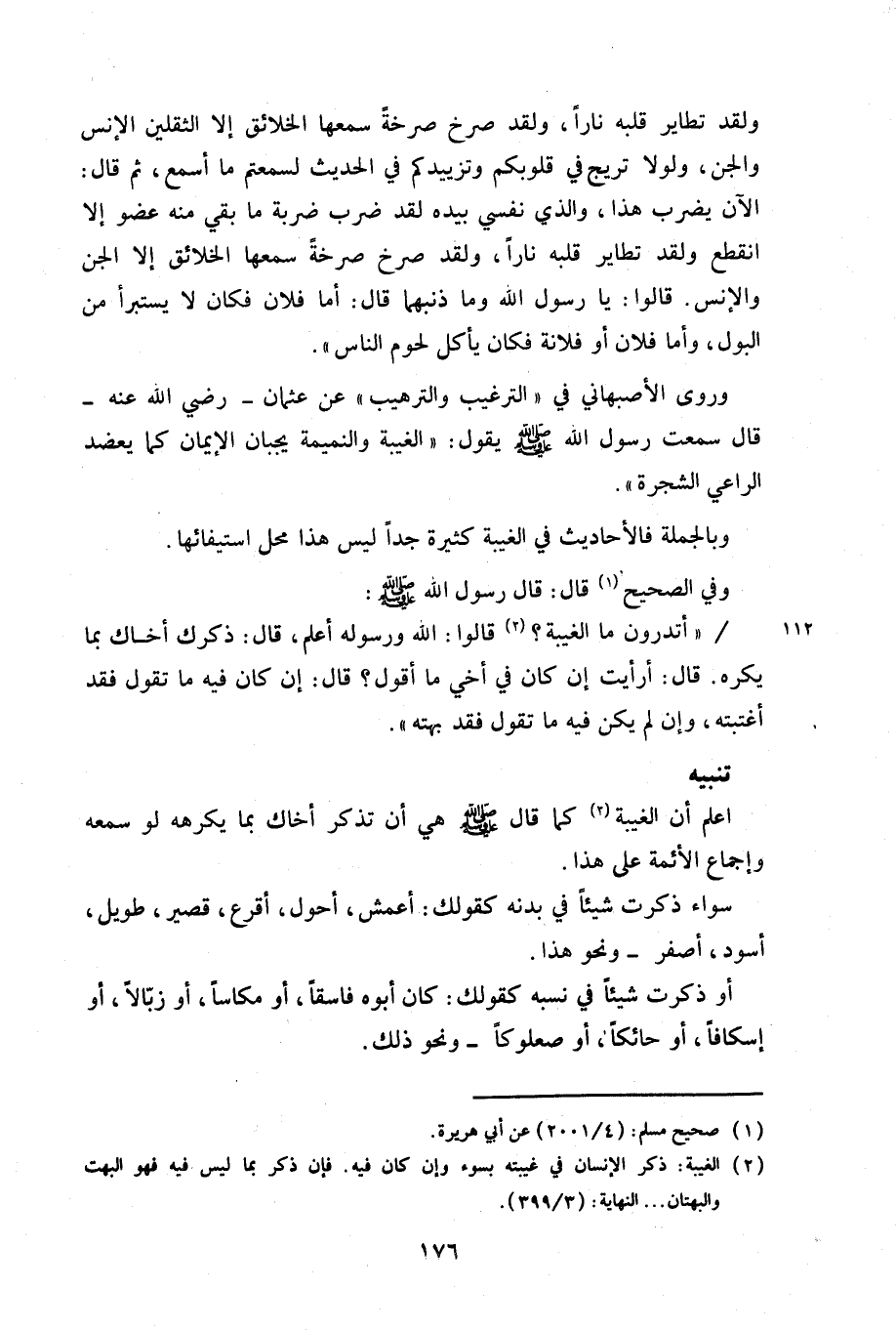 وفي الصحيح قال: قال رسول الله صلى الله عليه وسلم: / «أتدرون ما الغيبة؟ قالوا: الله ورسوله أعلم، قال: ذكرك أخاك بما يكره. قال: أرأيت إن كان في أخي ما أقول؟ قال: إن كان فيه ما تقول فقد أغتبته، وإن لم يكن فيه ما تقول فقد بهته».