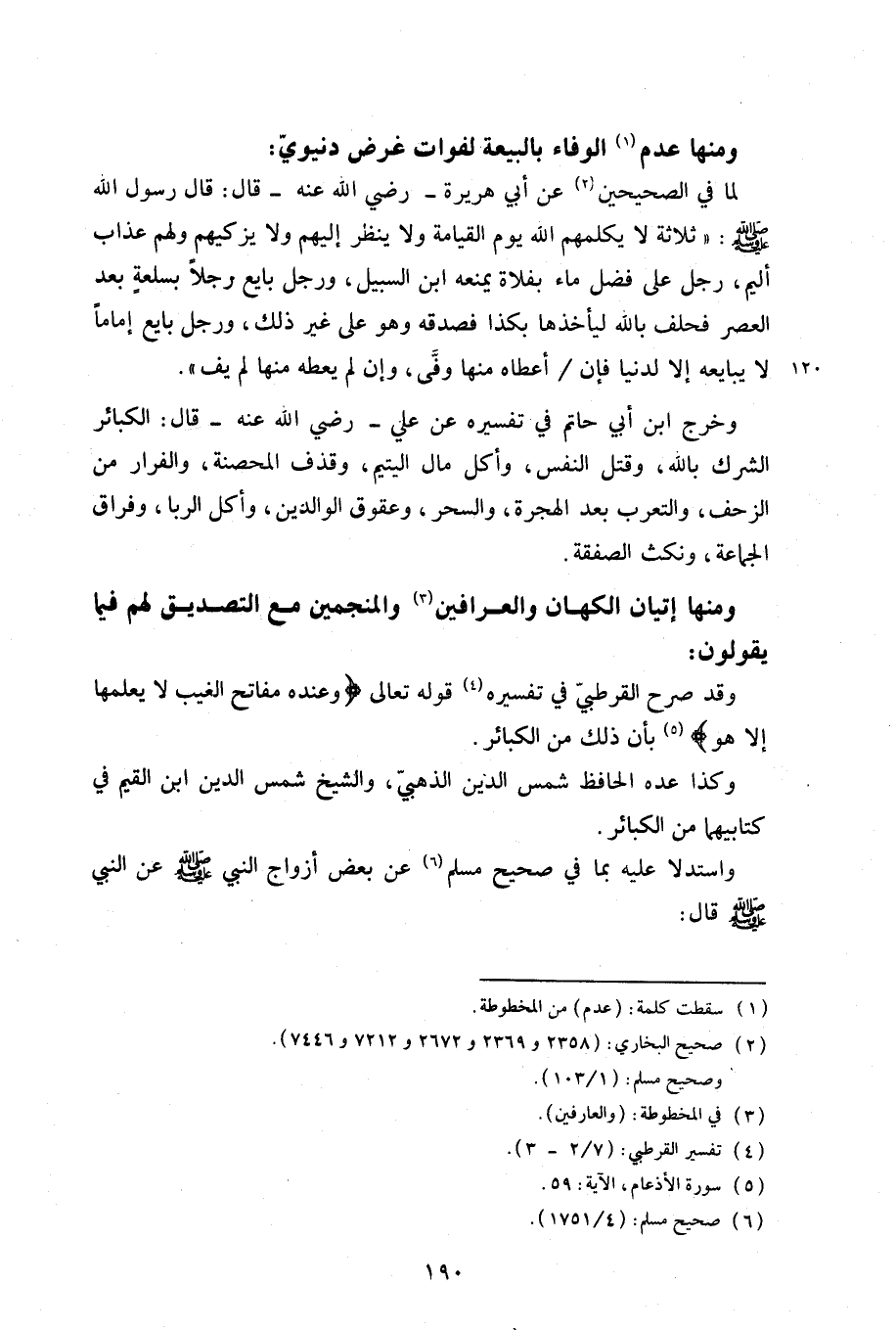 وقد صرح القرطبي في تفسيره قوله تعالى: {وَعِنْدَهُ مَفَاتِحُ الْغَيْبِ لَا يَعْلَمُهَا إِلَّا هُوَ} [الأنعام: 59] بأن ذلك من الكبائر.