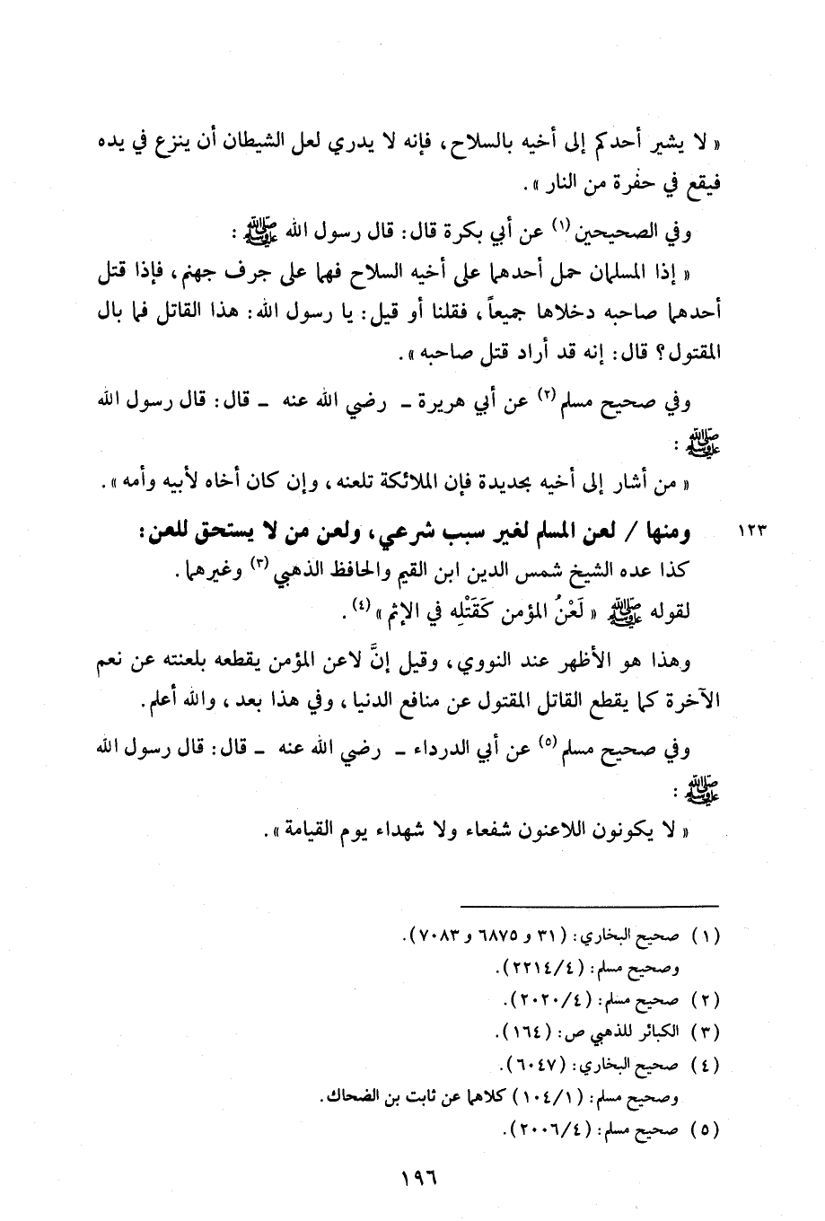 «لا يشير أحدكم إلى أخيه بالسلاح، فإنه لا يدري لعل الشيطان أن ينزع في يده فيقع في حفرة من النار».