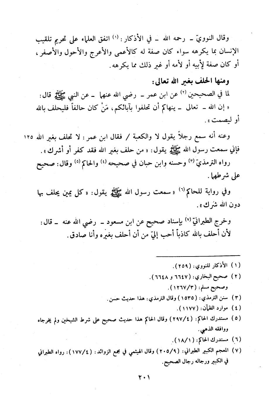 وخرج الطبراني بإسناد صحيح عن ابن مسعود -رضي الله عنه- قال: لأن أحلف بالله كاذباً أحب إلى من أن أحلف بغيره وأنا صادق.
