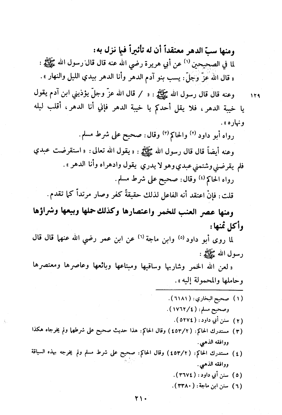 ومنها سب الدهر معتقداً أن له تأثيراً فيما نزل به: