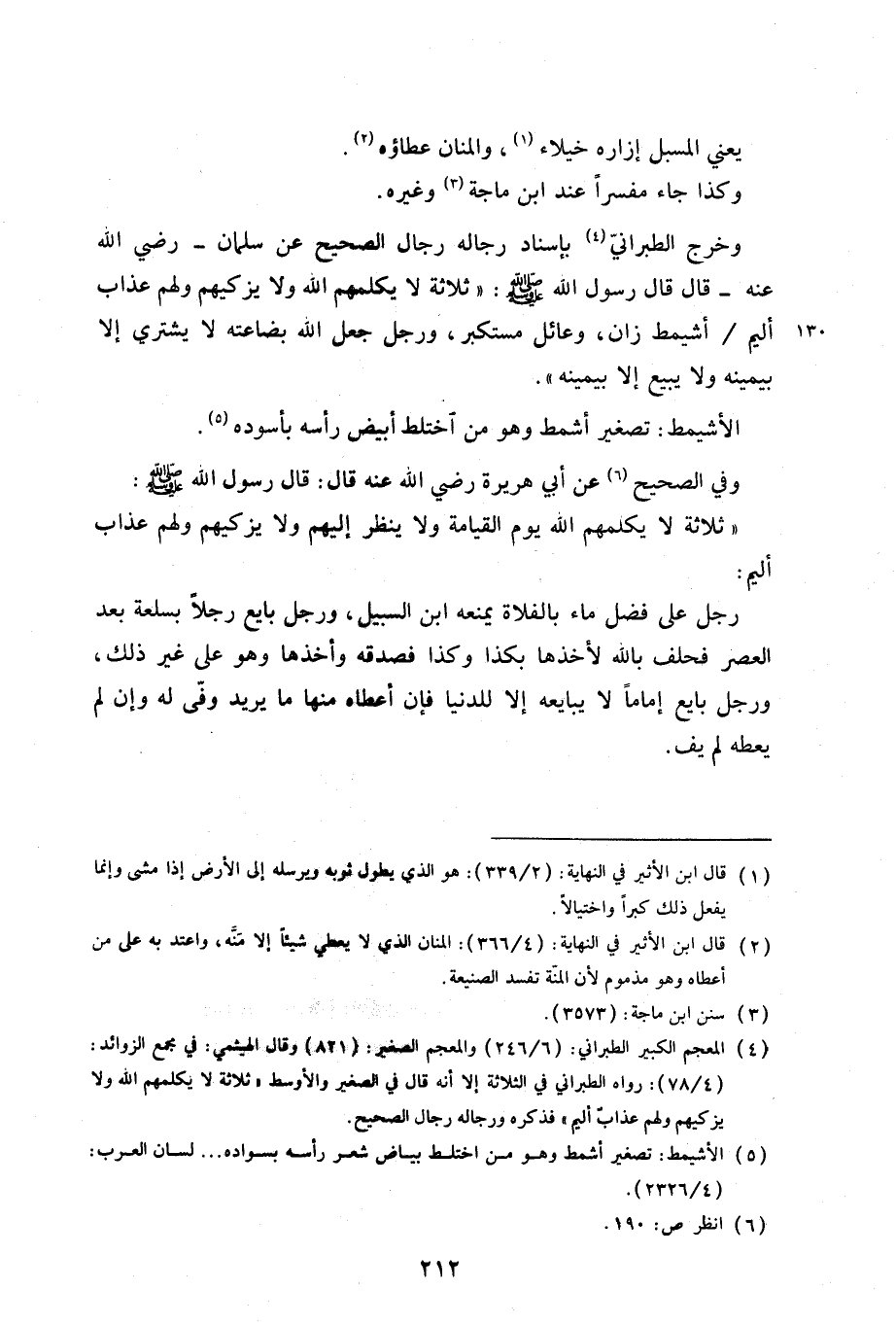 وفي الصحيح عن أبي هريرة رضي الله عنه قال: قال رسول الله (صلى الله عليه وسلم): «ثلاثة لا يكلمهم الله يوم القيامة ولا ينظر إليهم ولا يزكيهم ولهم عذاب أليم: