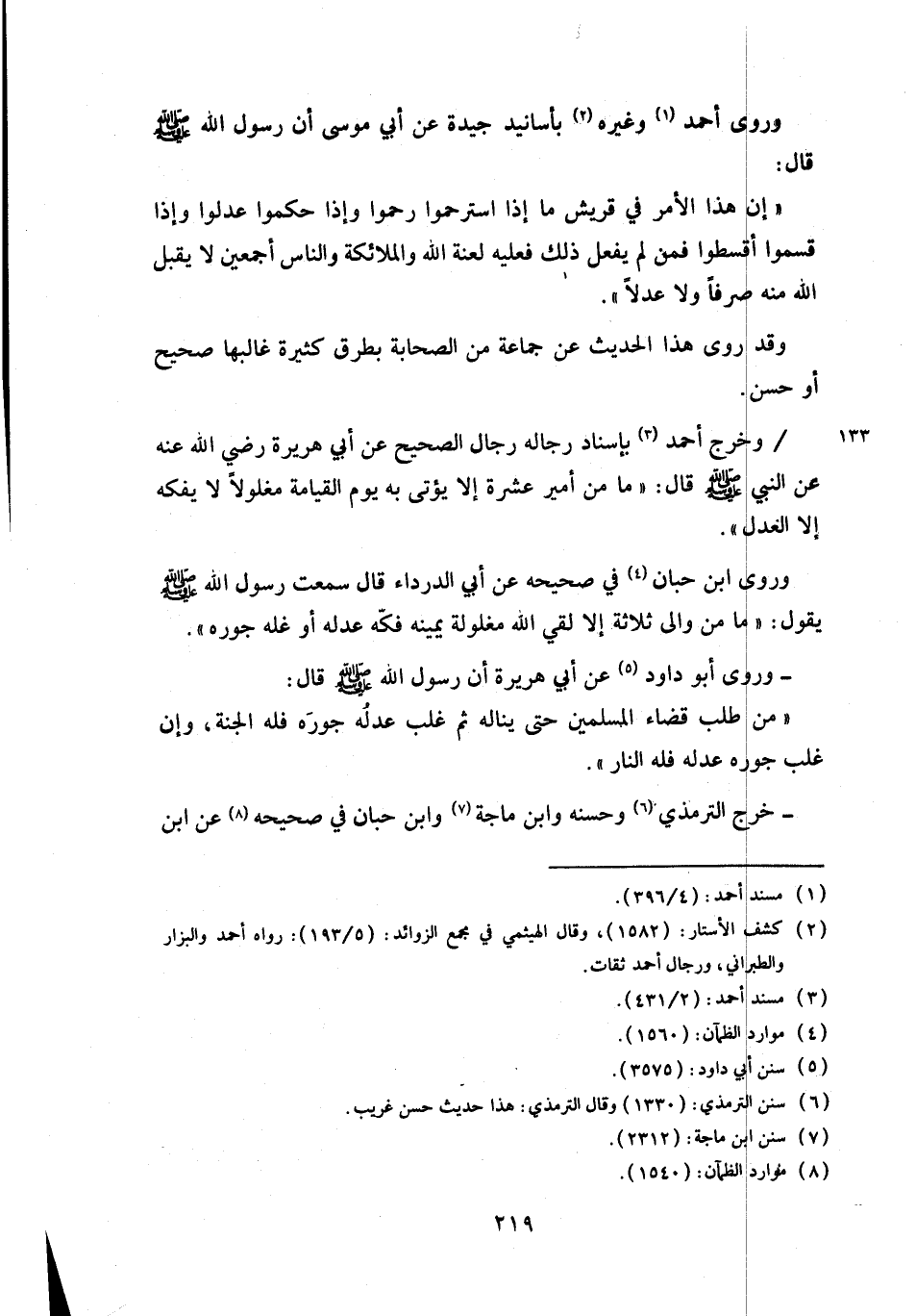 «إن هذا الأمر في قريش ما إذا استرحموا رحموا وإذا حكموا عدلوا وإذا قسموا أقسطوا فمن لم يفعل ذلك فعليه لعنة الله والملائكة والناس أجمعين لا يقبل الله منه صرفاً ولا عدلاً».