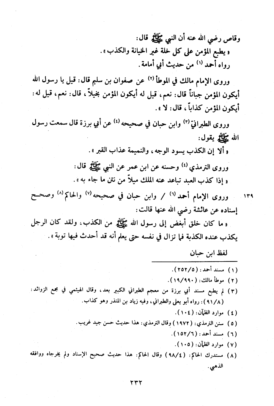 وروى الإمام مالك في الموطأ عن صفوان بن سليم قال: قيل يا رسول الله أيكون المؤمن جباناً قال: «نعم، قيل له أيكون المؤمن بخيلاً، قال: نعم، قيل له: أيكون المؤمن كذاباً، قال: لا».