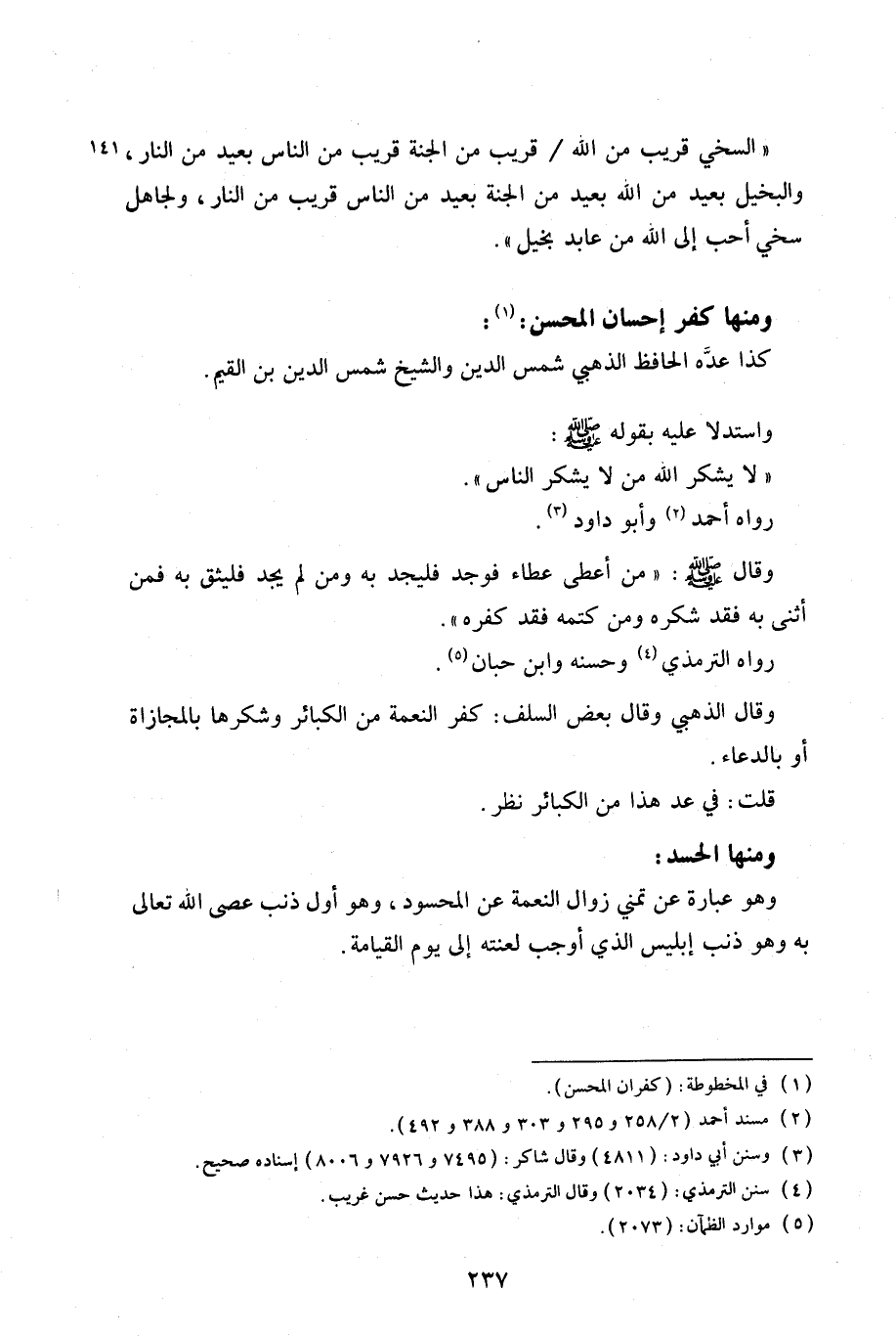 وقال الذهبي وقال بعض السلف: كفر النعمة من الكبائر وشكرها بالمجازاة أو بالدعاء.