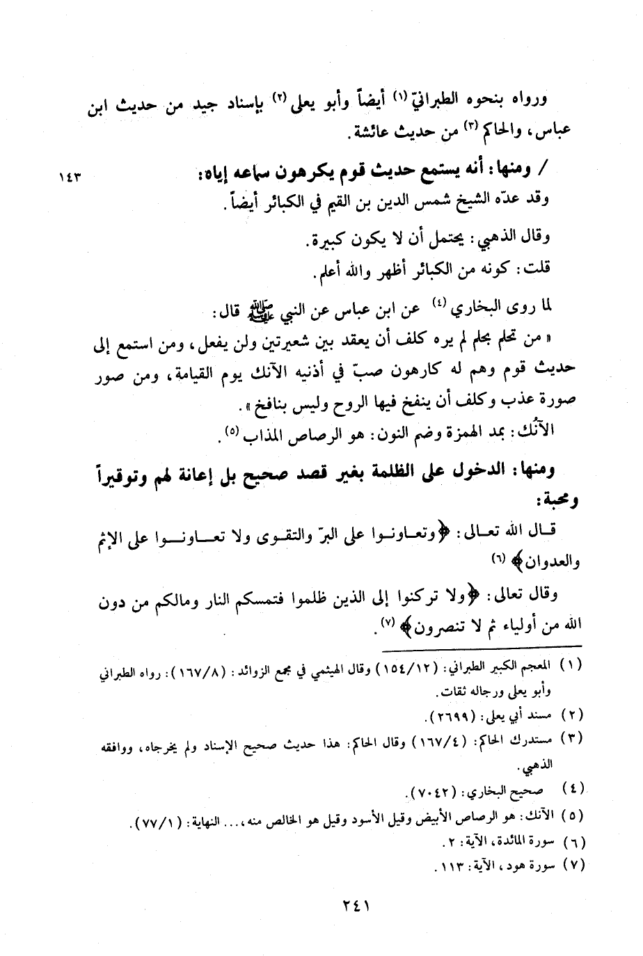 وقد عدّه الشيخ شمس الدين بن القيم في الكبائر أيضاً.