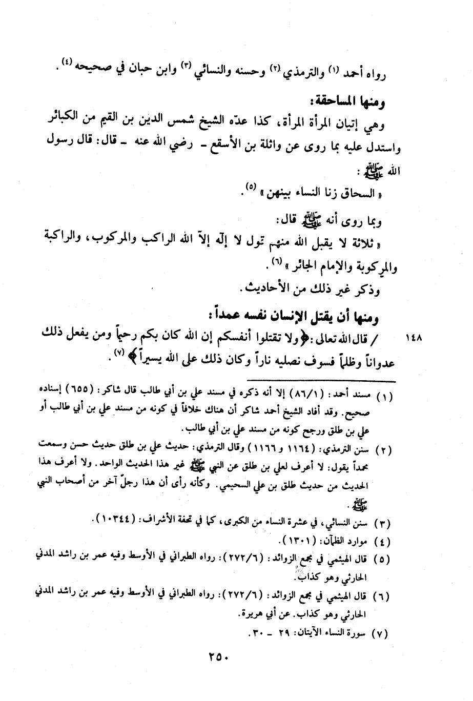 وهي إتيان المرأة المرأة، كذا عده الشيخ شمس الدين بن القيم من الكبائر واستدل عليه بما روى عن واثلة بن الأسقع – رضي الله عنه قال: قال رسول صلى الله عليه سلم: «السحاق زنا النساء بينهن».