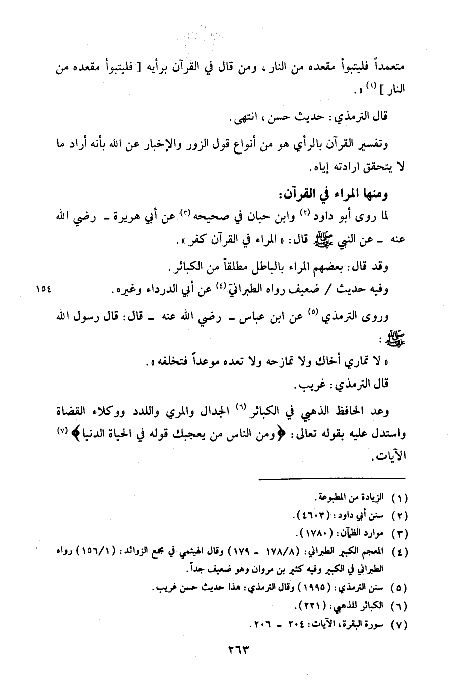 لما روى أبو داود وابن حبان في صحيحه عن أبي هريرة – رضي الله عنه – عن النبي صلى الله عليه وسلم قال: «المراء في القرآن كفر».