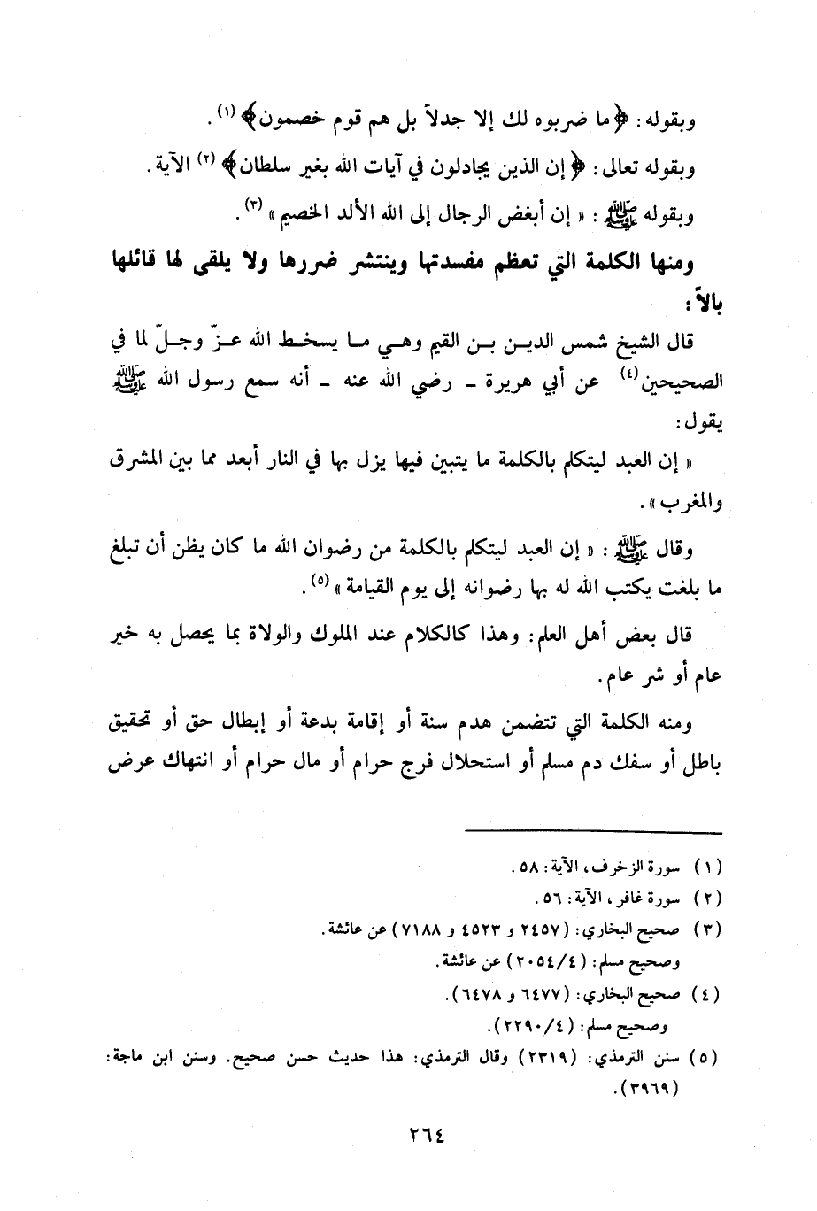 ومنها الكلمة التي تعظم مفسدتها وينتشر ضررها ولا يلقى لها قائلها بالاً: