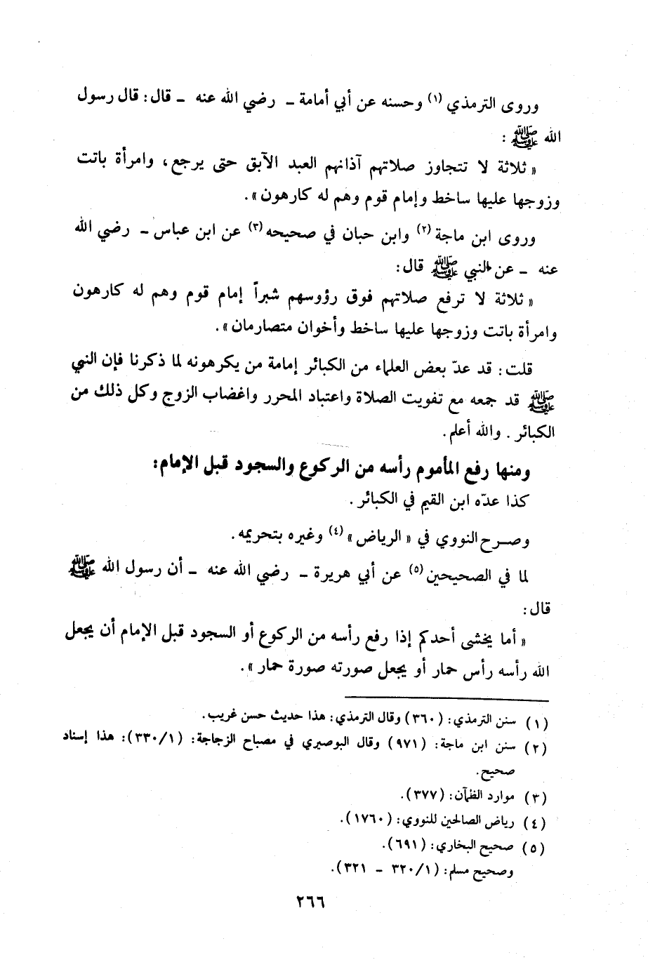 «أما يخشى أحدكم إذا رفع رأسه من الركوع أو السجود قبل الإمام أن يجعل الله رأسه رأس حمار أو يجعل صورته صورة حمار».