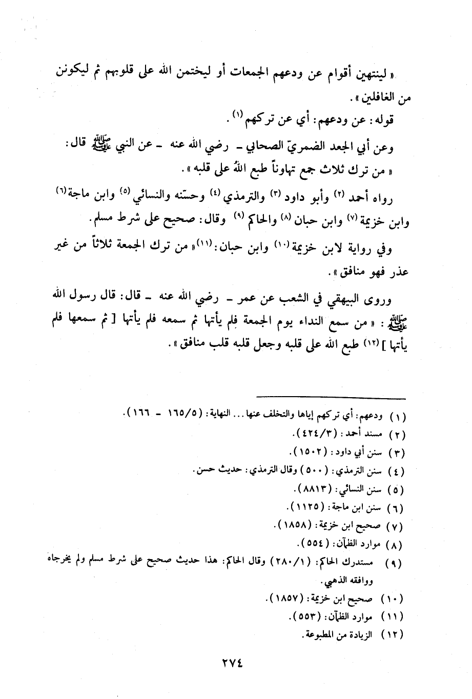 «لينتهين أقوام عن ودعهم الجمعات أو ليختمن الله على قلوبهم ثم ليكونن من الغافلين».