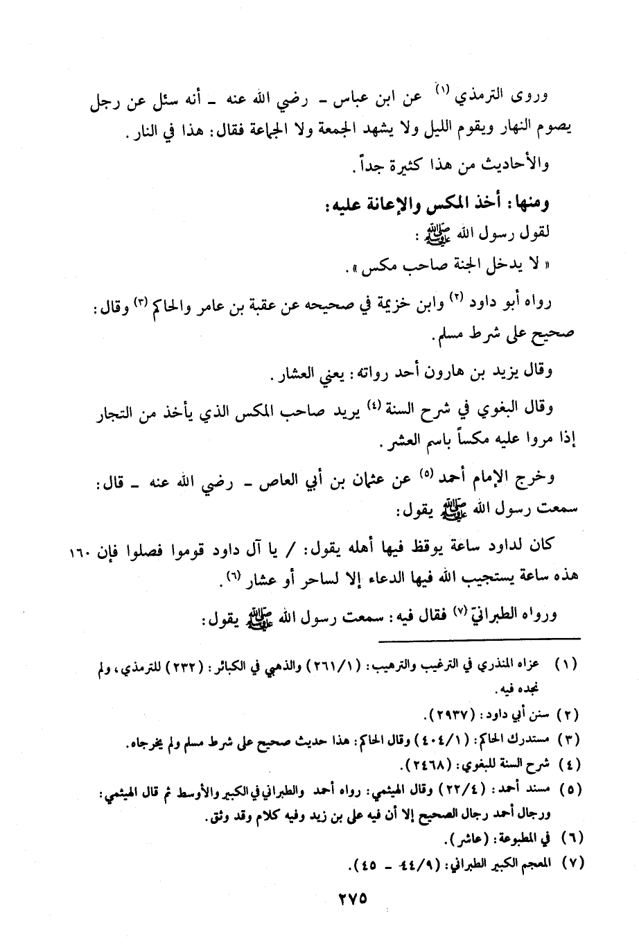 وقال البغوي في شرح السنة يريد صاحب المكس الذي يأخذ من التجار إذا مروا عليه مكساً باسم العشر.
