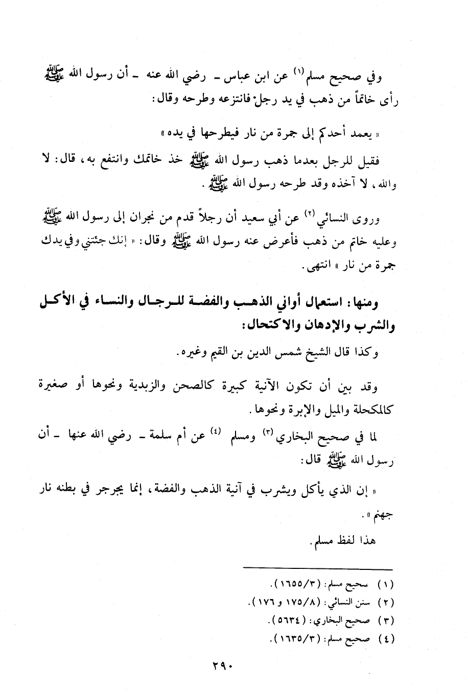 ومنها: استعمال أواني الذهب والفضة للرجال والنساء في الأكل والشرب والإدهان والاكتحال: