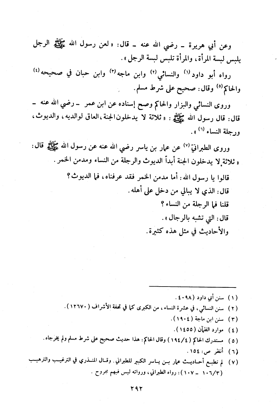وروى النسائي والبزار والحاكم وصح إسناده عن ابن عمر - رضي الله عنه - قال: قال رسول الله صلي الله عليه وسلم: «ثلاثة لا يدخلون الجنة، العاق لوالديه، والديوث، ورجلة النساء».