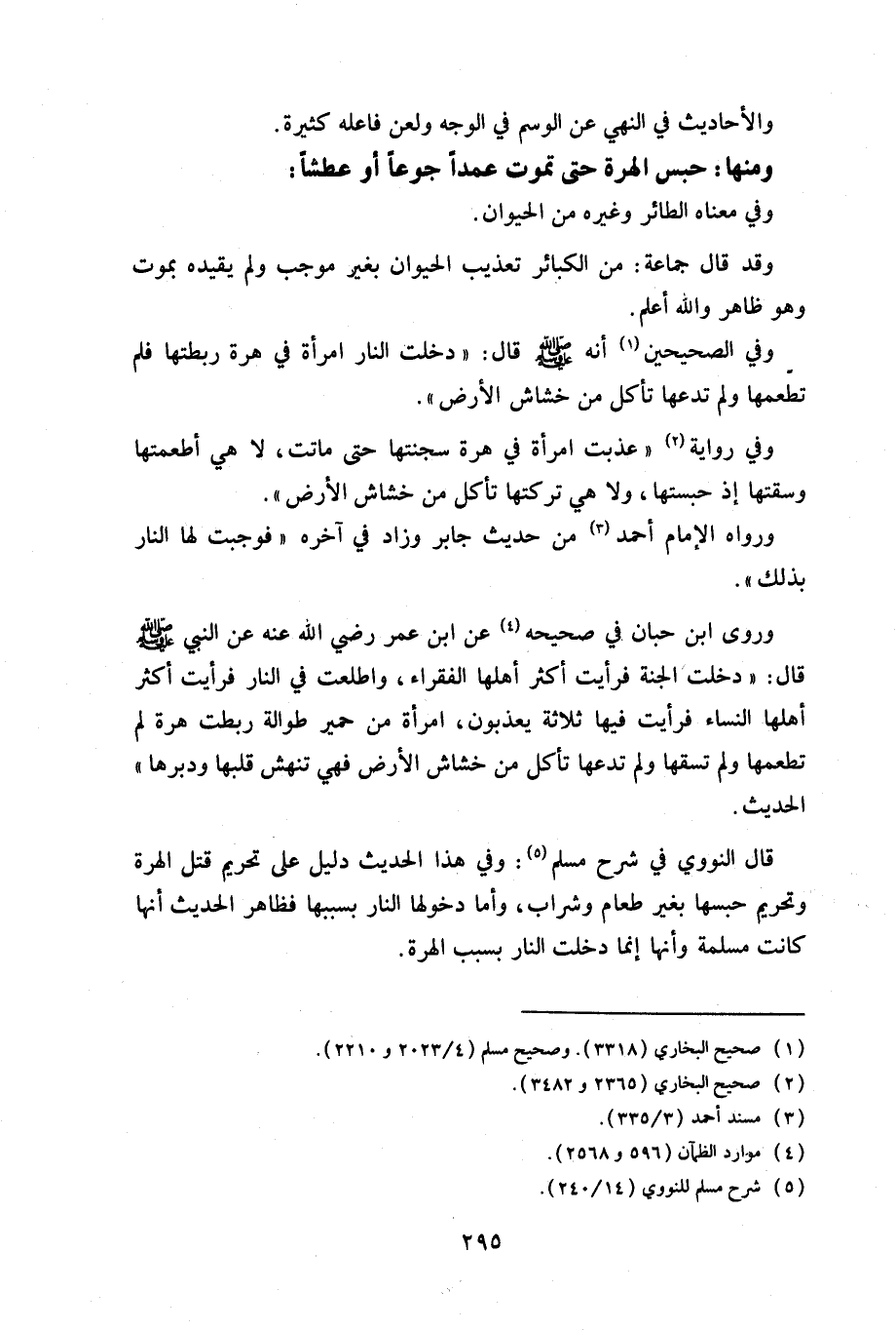 وفي الصحيحين أنه صلي الله عليه وسلم قال: «دخلت النار امرأة في هرة ربطتها فلم تطعمها ولم تدعها تأكل من حشاش الأرض»