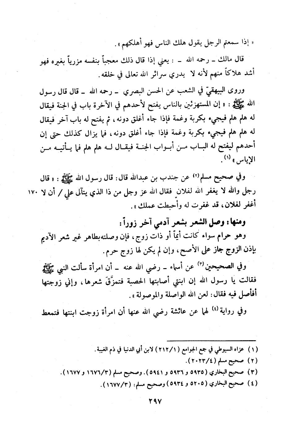 وفي الصحيحين عن أسماء - رضي الله عنها - أن امرأة سألت النبي صلي الله عليه وسلم فقالت يا رسول الله إن ابنتي أصابتها الحصبة فتمزَّقَ شعرها، وإني زوجتها أفأصل فيه فقال: «لعن الله الواصلة والموصولة».