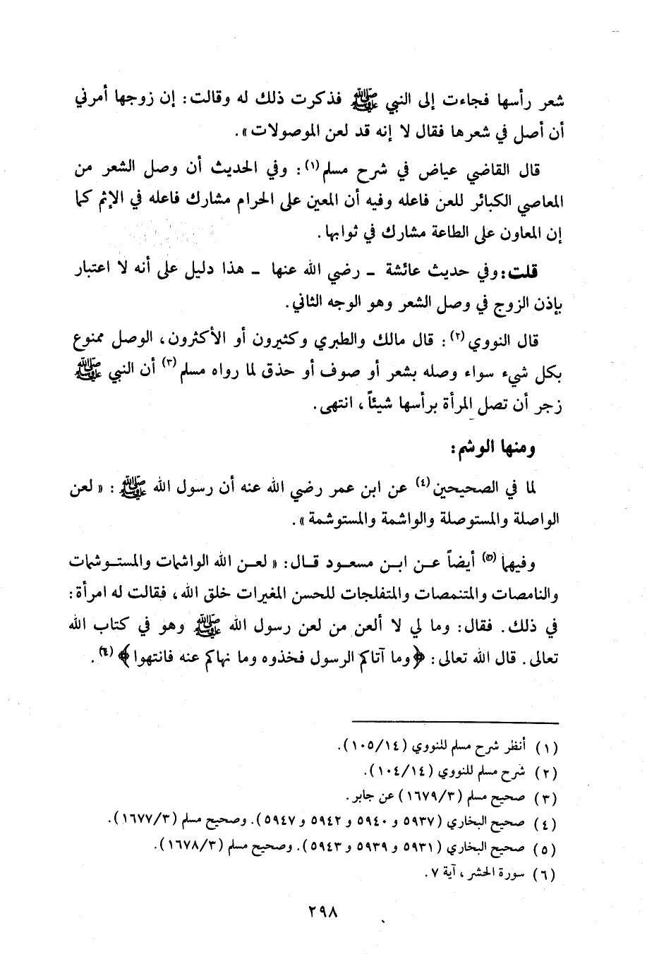 وفيهما أيضاً عن ابن مسعود قال: «لعن الله الواشمات والمستوشمات والنامصات والمتنمصات والمتفلجات للحسن المغيرات خلق الله، فقالت له امرأة: في ذلك. فقال: وما لي لا ألعن من لعن رسول الله صلي الله عليه وسلم وهو في كتاب الله تعال. قال الله تعالى: (وما آتاكم الرسول فخذوه وما نهاكم عنه فانتهوا)