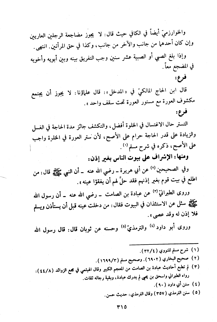 قال ابن الحاج المالكي في "المدخل": قال علماؤنا: لا يجوز أن يجتمع مكشوف العورة مع مستور العورة تحت سقف واحد".