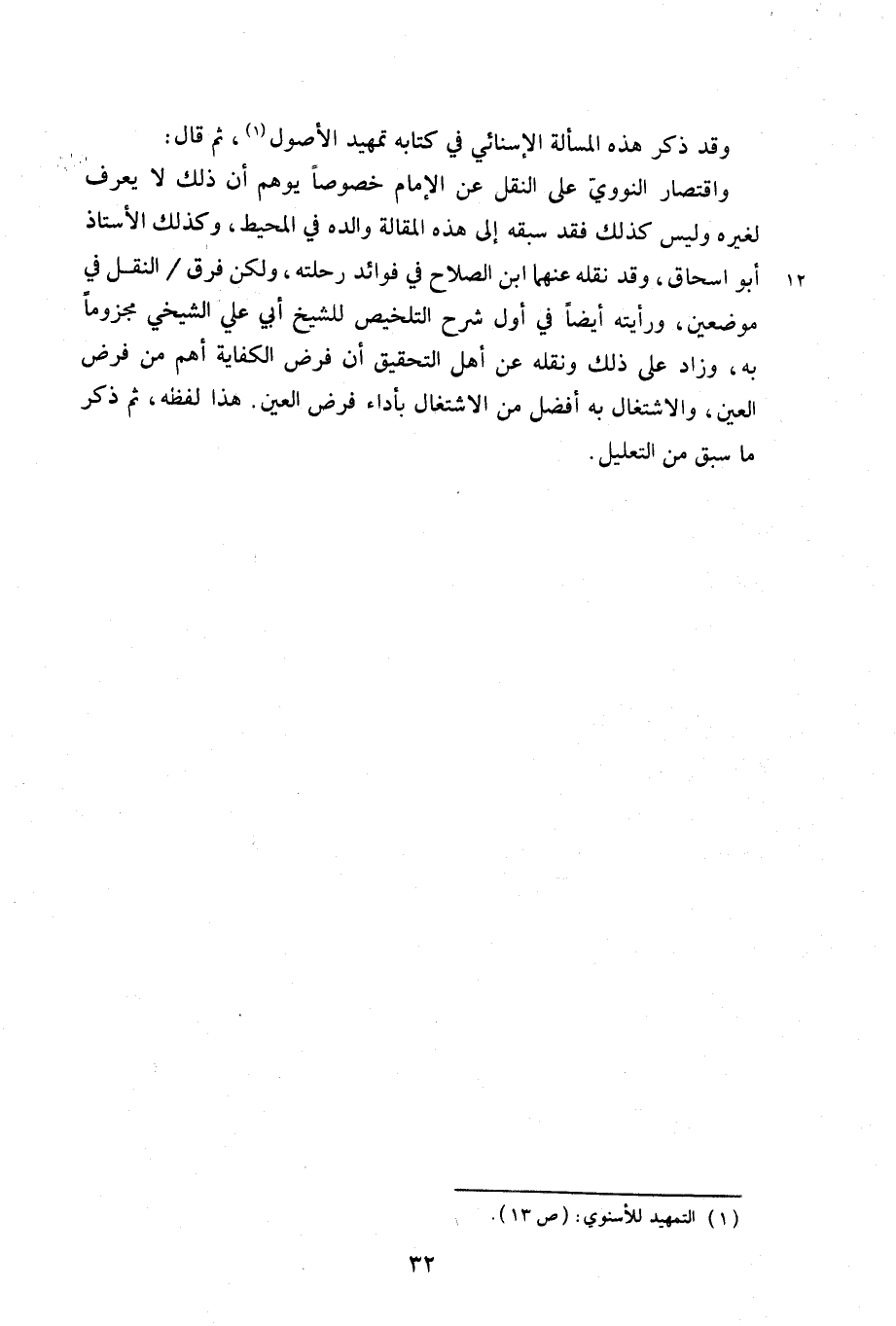وقد ذكر هذه المسألة الإسنائي في كتابه تمهيد الأصول، ثم قال: