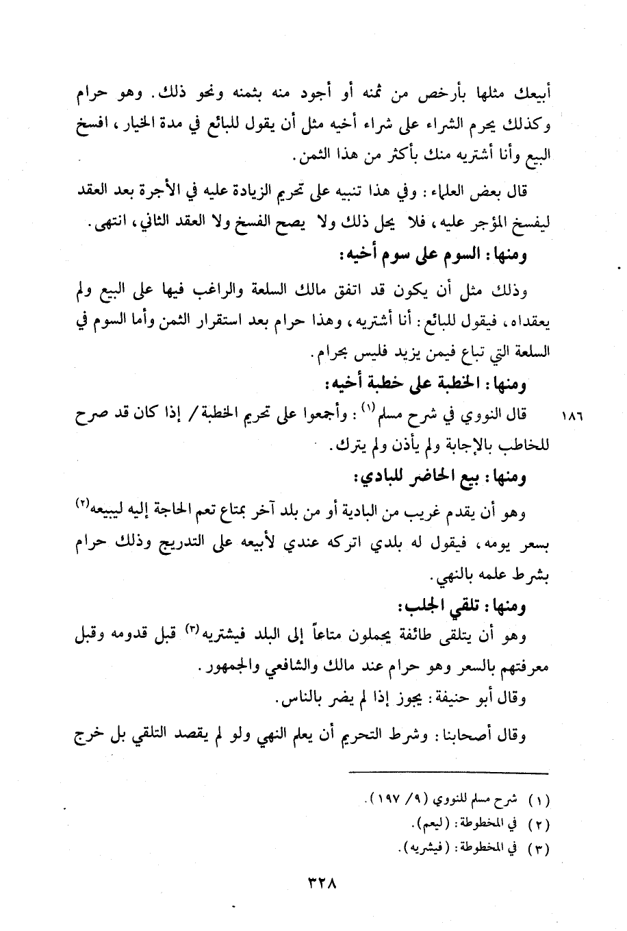 أبيعك مثلها بأرخص من ثمنه أو أجود منه بثمنه ونحو ذلك. وهو حرام وكذلك يحرم الشراء على شراء أخيه مثل أن يقول للبائع في مدة الخيار، افسخ البيع وأنا أشتريه منك بأكثر من هذا الثمن.
