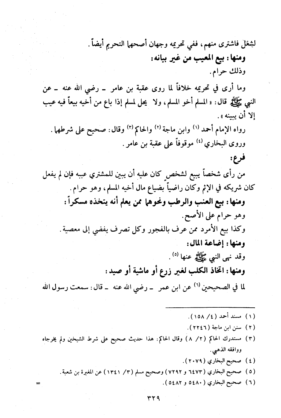 وما أرى في تحريمه خلافاً لما روى عقبة بن عامر – رضي الله عنه – عن النبي صلى الله عليه وسلم قال: "المسلم أخو المسلم، ولا يحل لمسلم إذا باع من أخيه بيعاً فيه عيب إلا أن يبينه".