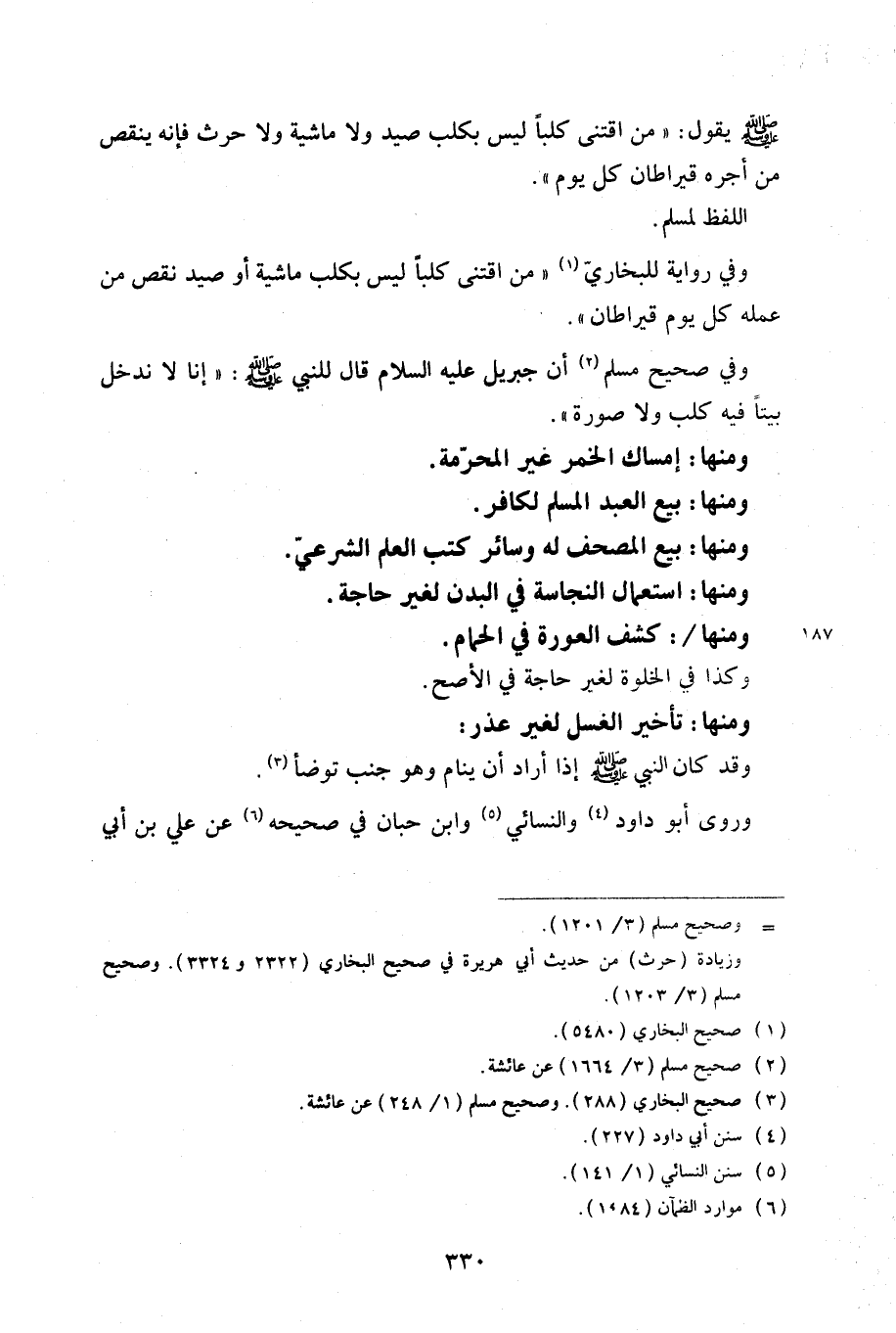وفي رواية للبخاري "من اقتنى كلباً ليس بكلب ماشية أو صيد نقص من عمله كل يوم قيراطان".