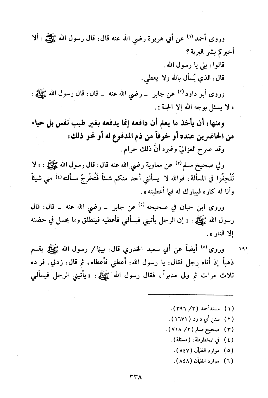 وفي صحيح مسلم عن معاوية رضي الله عنه قال: قال رسول الله صلى الله عليه وسلم: «لا تلحفوا في المسألة، فوالله لا يسألني أحد منكم شيئًا فتخرج مسألته مني شيئًا وأنا له كاره فيبارك له فيما أعطيته».