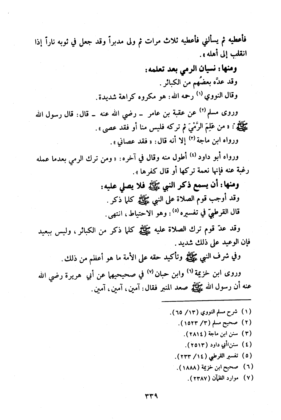 وقد عد قوم ترك الصلاة عليه صلى الله عليه وسلم كلما ذكر من الكبائر، وليس ببعيد فإن الوعيد على ذلك شديد.