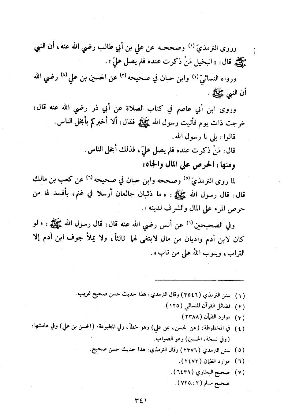 وروى الترمذي وصححه عن علي بن أبي طالب رضي الله عنه، أن النبي صلى الله عليه وسلم قال: «البخيل من ذكرت عنده فلم يصل علي».
