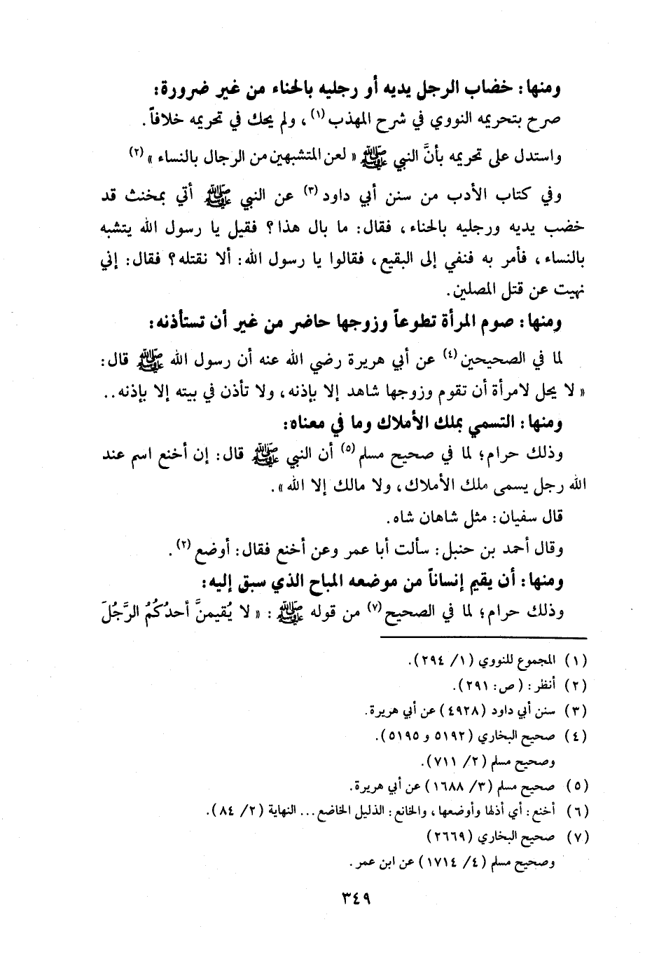 ومنها: خضاب الرجل يديه أو رجليه بالحناء من غير ضرورة: