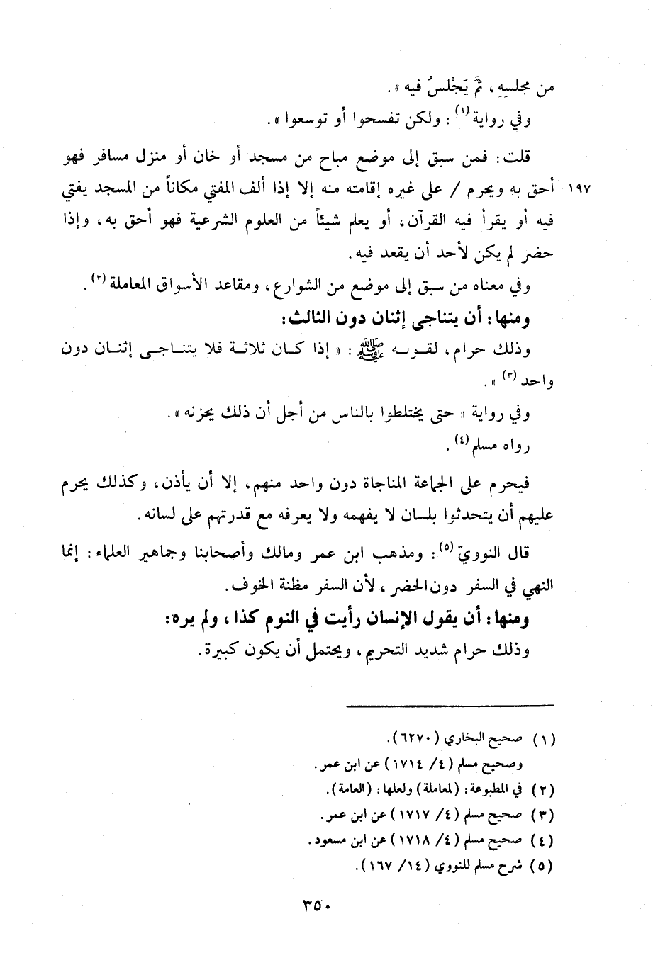 فيحرم على الجماعة المناجاة دون واحد منهم، إلا أن يأذن، وكذلك يحرم عليهم أن يتحدثوا بلسان لا يفهمه ولا يعرفه مع قدرتهم على لسانه.