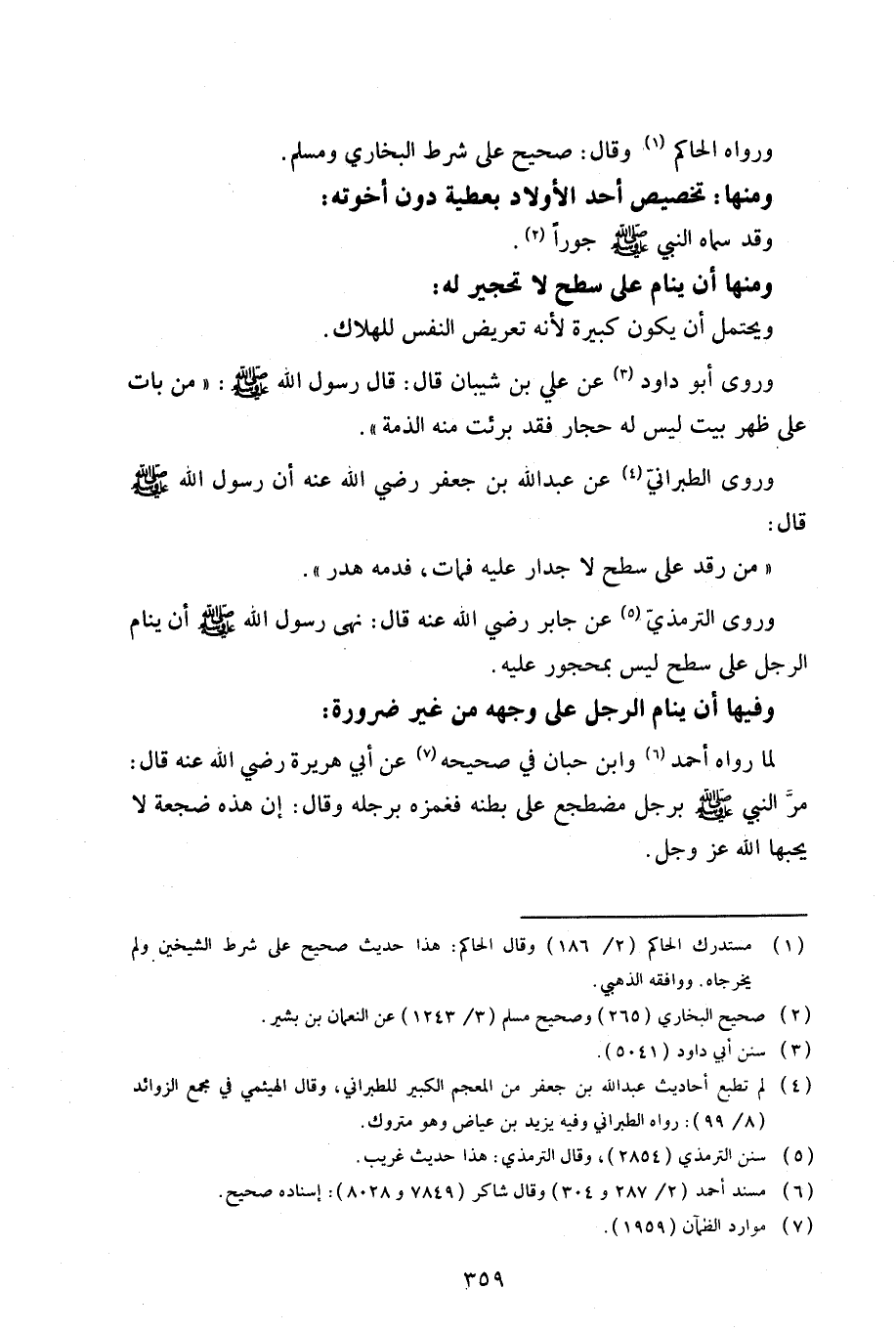 وفيها أن ينام الرجل على وجهه من غير ضرورة: