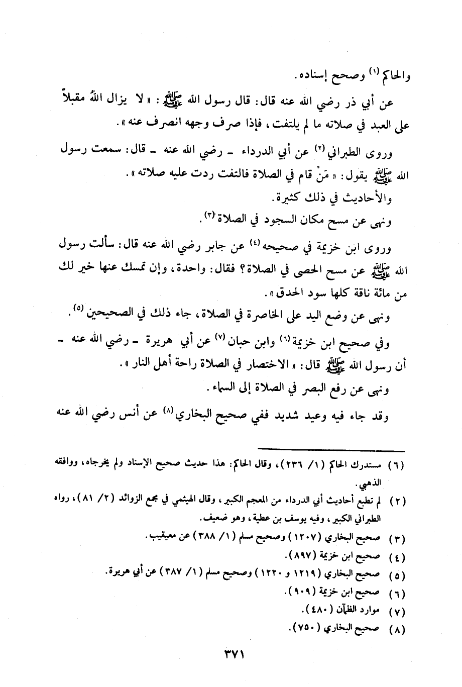 عن أبي ذر رضي الله عنه قال: قال رسول الله صلى الله عليه وسلم: «لا يزال الله مقبلاً على العبد في صلاته ما لم يلتفت، فإذا صرف وجهه انصرف عنه».