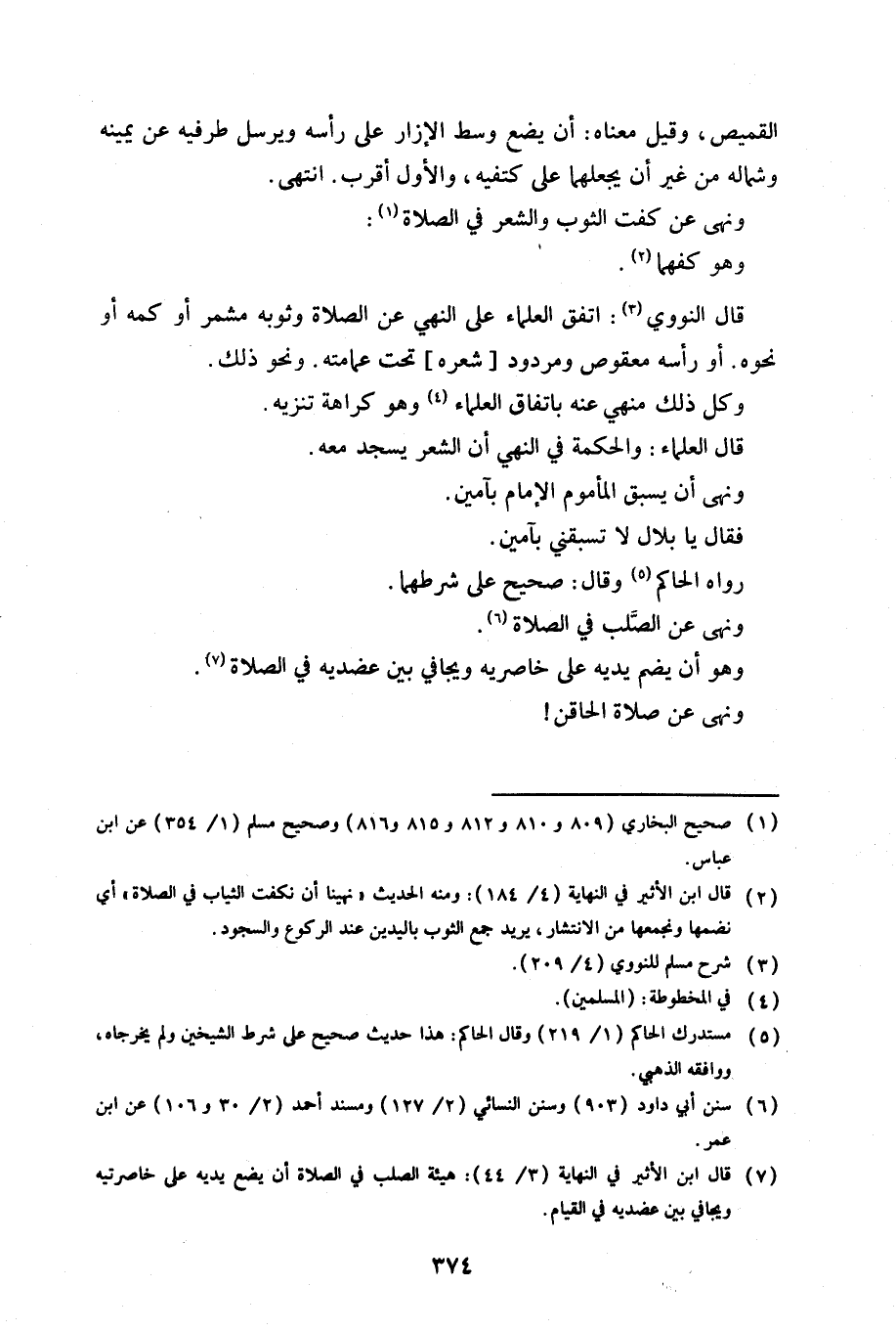 قال النووي: اتفق العلماء على النهي عن الصلاة وثوبه مشمر أو كمه أو نحوه. أو رأسه معقوص ومردود [شعره] تحت عمامته. ونحو ذلك.