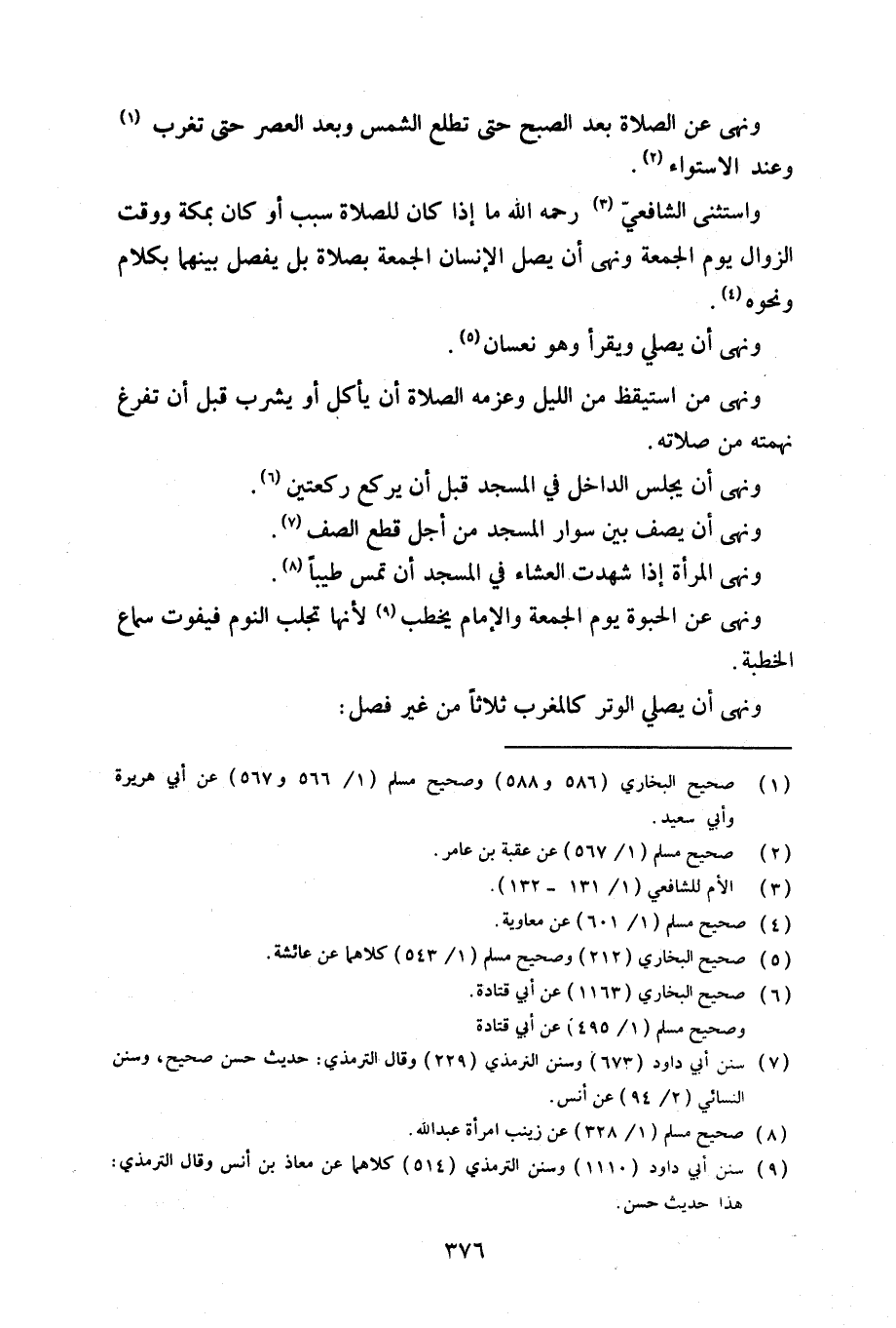 ونهى عن الصلاة بعد الصبح حتى تطلع الشمس وبعد العصر حتى تغرب وعند الاستواء.