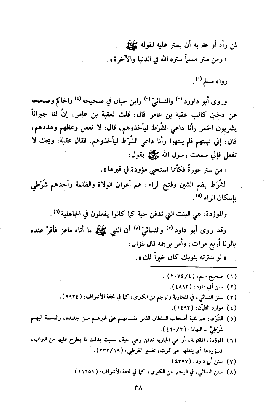 «من ستر عورة فكأنما استحي مؤودة في قبرها».