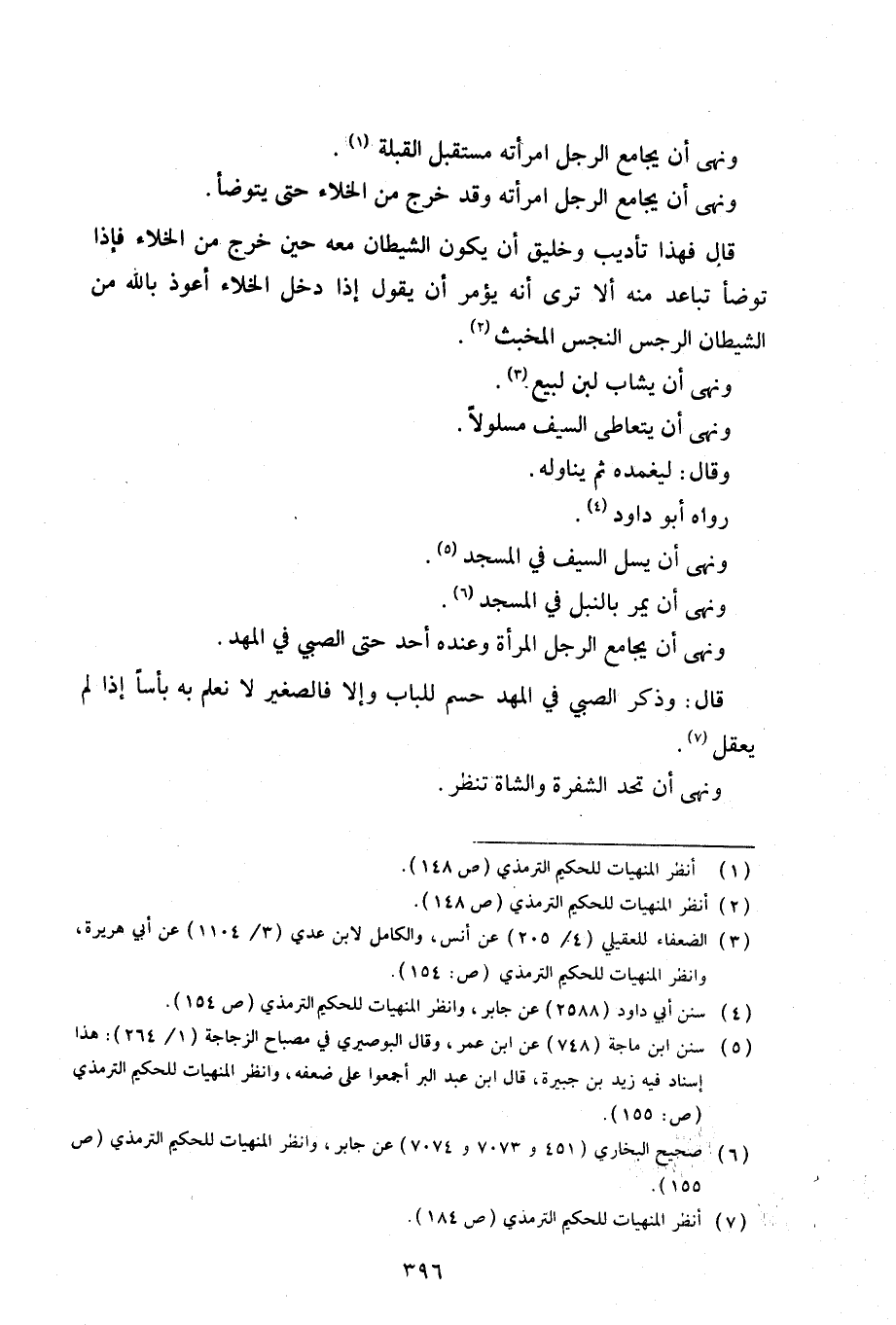 ونهى أن يجامع الرجل المرأة وعنده أحد حتى الصبي في المهد.