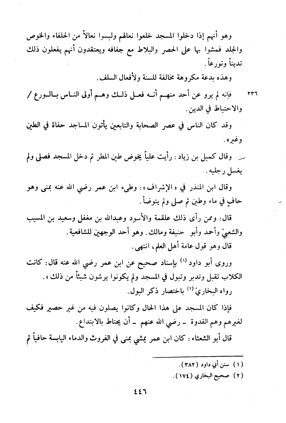 وقد كان الناس في عصر الصحابة والتابعين يأتون المساجد حفاة في الطين وغيره.