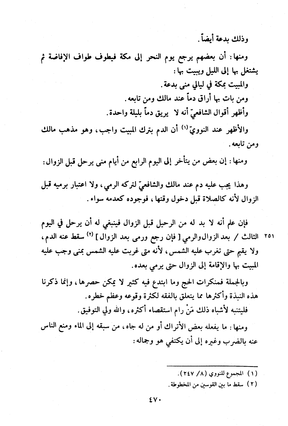 ومنها: أن بعضهم يرجع يوم النحر إلى مكة فيطوف طواف الإفاضة ثم يشتغل بها إلى الليل ويبيت بها: