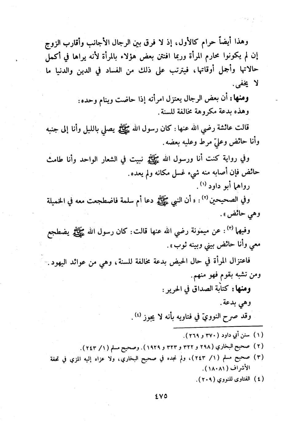 فاعتزال المرأة في حال الحيض بدعة مخالفة للسنة، وهي من عوائد اليهود. ومن تشبه بقوم فهو منهم.