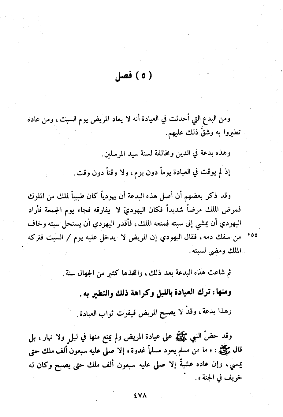 ومن البدع التي أحدثت في العيادة أنه لا يعاد المريض يوم السبت، ومن عاده تطيروا به وشق ذلك عليهم.